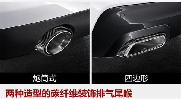 排氣尾喉方面,新車將有四種不同搭配提供選擇。炮筒和四邊形兩種不銹鋼鍍鉻排氣,看起來簡約、時尚,卻依舊能營造出迷人的聲浪。加裝碳纖維裝飾的兩個排氣尾喉,不僅能將排氣聲完美的體現出來,還能增加整車的運動風格。