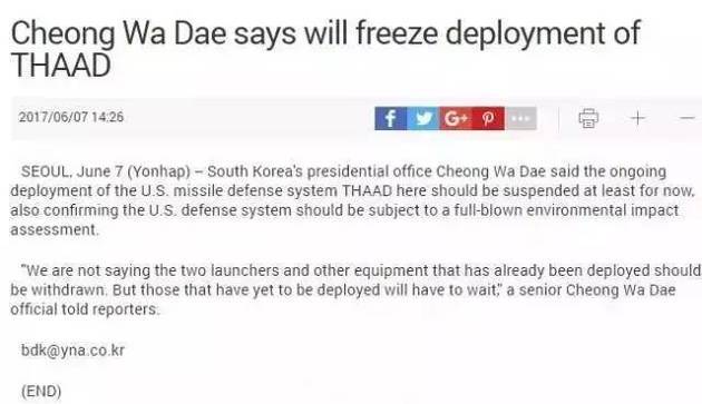但韓國政府官員也強調,目前已部署到位的兩輛“薩德”發射車和其他設施不會撤離,尚未部署的則需要等待。