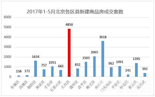 而值得一提的是,北京加大了自住房供應力度,1-5月北京自住型商品房整體銷售情況良好。大興登頂前5月北京樓市成交榜首而從區域來看,截止到5月31日,大型新建商品房成交共計4850套,坐上1-5月北京新房網簽量頭把交椅的位置,房山和順義分別以成交3618套、2065套緊隨其后,位列第二名和第三名。而去年同期,排名前三的區域成交量都在1萬套以上,今年大幅度回落。