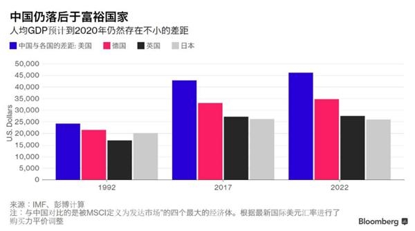 雖然取得了這么多進步,但在收入上和發達國家之間依然存在著差距:目前和日本存在2.6萬美元的差距,和美國差距將近4.3萬美元。即便是五年以后,這一差距也不會有多少改觀。
