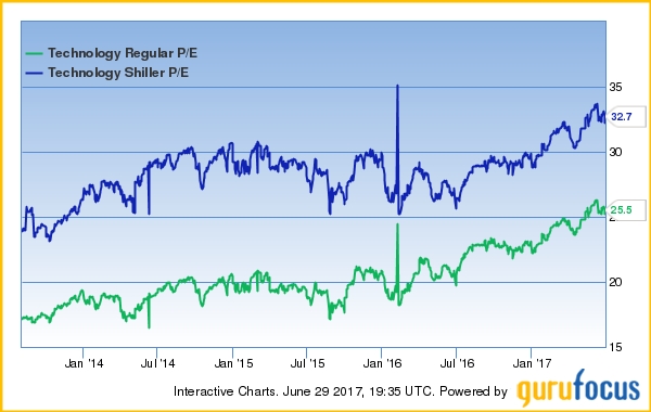 自5月份以來,羅伯特·希勒的周期調整市盈率(CAPE)平均為30左右,創2008年金融危機以來的新高。截至6月29日,由于電信,技術和房地產業的市盈率高達29.8,32.7和48.7,導致了周期調整市盈率(CAPE)不斷攀高。根據Shiller市盈率估值分析,市場預期年回報約是-2%。