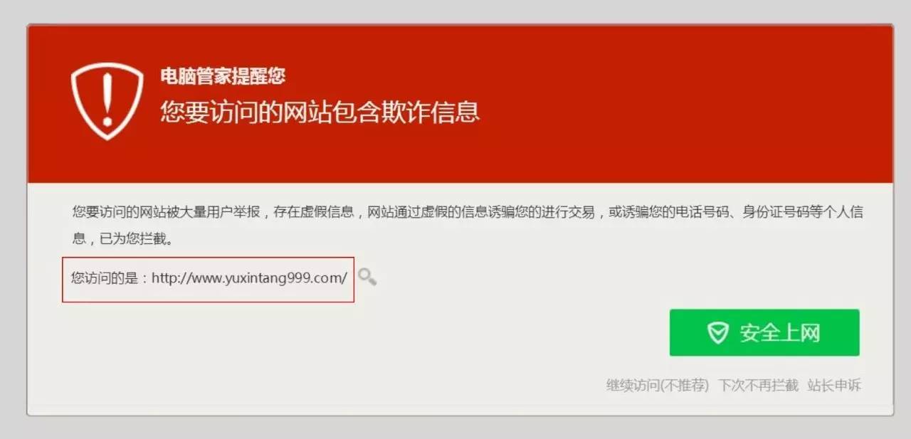 不過,現(xiàn)在訪問該公司官方網(wǎng)站,已經(jīng)被殺毒軟件提示:“要訪問的網(wǎng)站被大量用戶舉報、存在虛假信息,網(wǎng)站通過虛構(gòu)的信息誘騙您的交易,或誘騙您的電話號碼、身份證號碼等個人信息,已為您攔截。”的字樣。