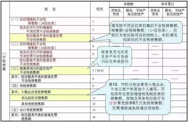 1、注意貨物及勞務(wù)列與服務(wù)、不動(dòng)產(chǎn)和無形資產(chǎn)列分別填寫對應(yīng)的收入,填報(bào)列有錯(cuò)會(huì)影響稅款的屬性,還會(huì)影響一般納稅人的認(rèn)定。