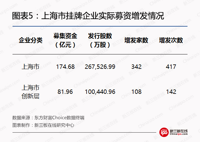 自2016年初至今,共有342家上海市掛牌企業(yè)實施過417起定增事件,合計募資174.68億元。其中108家上海創(chuàng)新層企業(yè)合計募資達81.96億元,占比46.92%。
