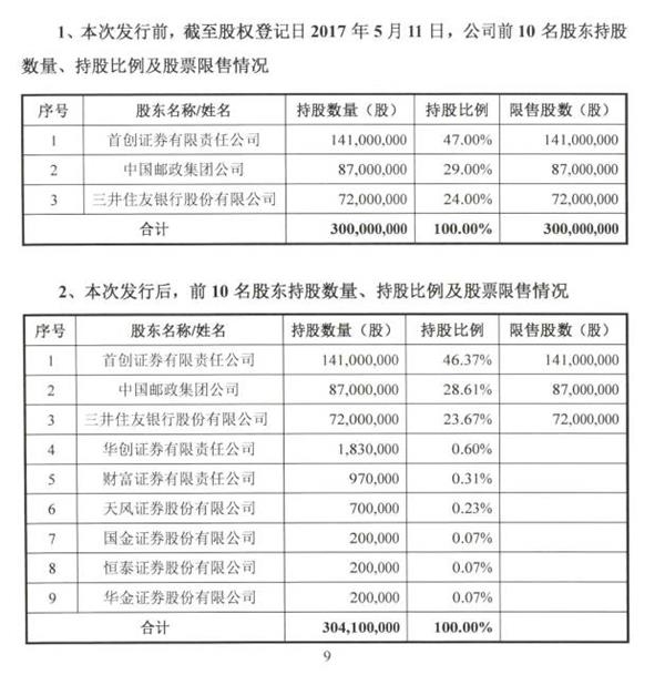 火山君了解到,此次發行之后,中郵基金就由之前的三個股東變成了9個股東,公司的控股權和實控人都沒有發生變化,華創證券、財富證券、天風證券、國金證券、恒泰證券、華金證券幾個券商都成為公司的股東,持股比例分別為 0.60% 、0.31 %、0.23%、 0.07%、 0.07%、 0.07 % .